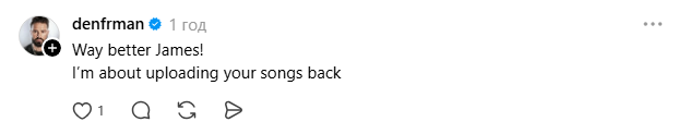 “Набагато краще, Джеймсе! Я вже збираюся завантажити твої пісні назад”