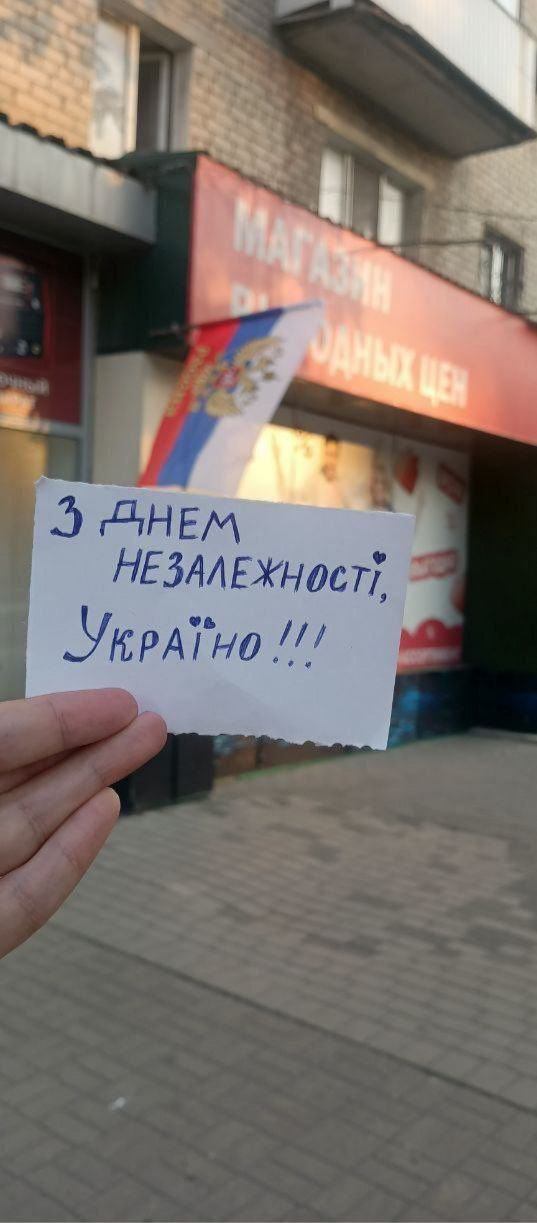 «Святкую тихо, але з гордістю»: Українці на окупованих територіях вийшли з символами до Дня Незалежності