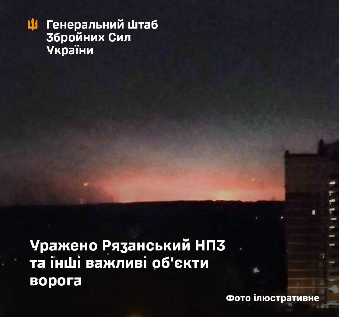 У ніч на 20 листопада підрозділи Сил оборони України завдали повторного вогневого ураження по Рязанському нафтопереробному заводу у Рязанській області РФ.