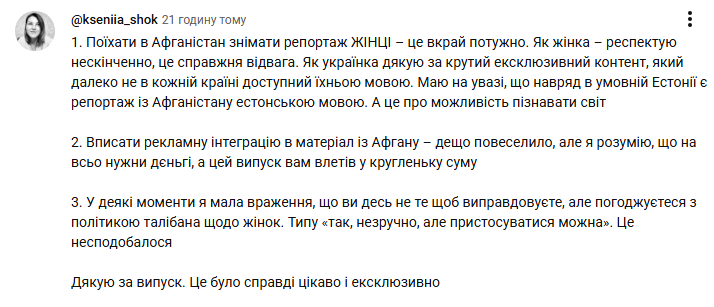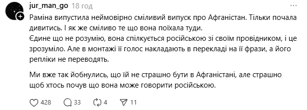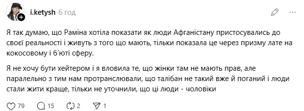 Водночас були й ті, хто похвалив репортаж та саму Раміну Есхакзай за її сміливість.