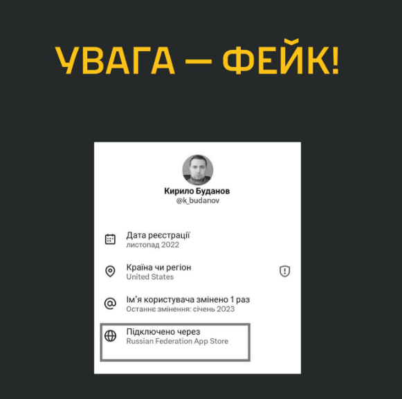 Для підтвердження цієї тези поширювався спеціально створений скриншот, на якому було зазначено, що акаунт начальника розвідки нібито зареєстрований на території Російської Федерації.