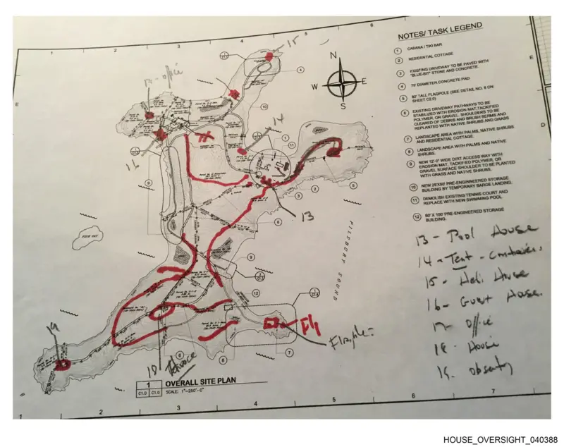Окрему увагу привернули архітектурні плани розбудови острова Грейт-Сент-Джеймс. Документи свідчать, що Епштейн планував створити там закриту інфраструктуру, яка включала підводний офіс та амфітеатр.