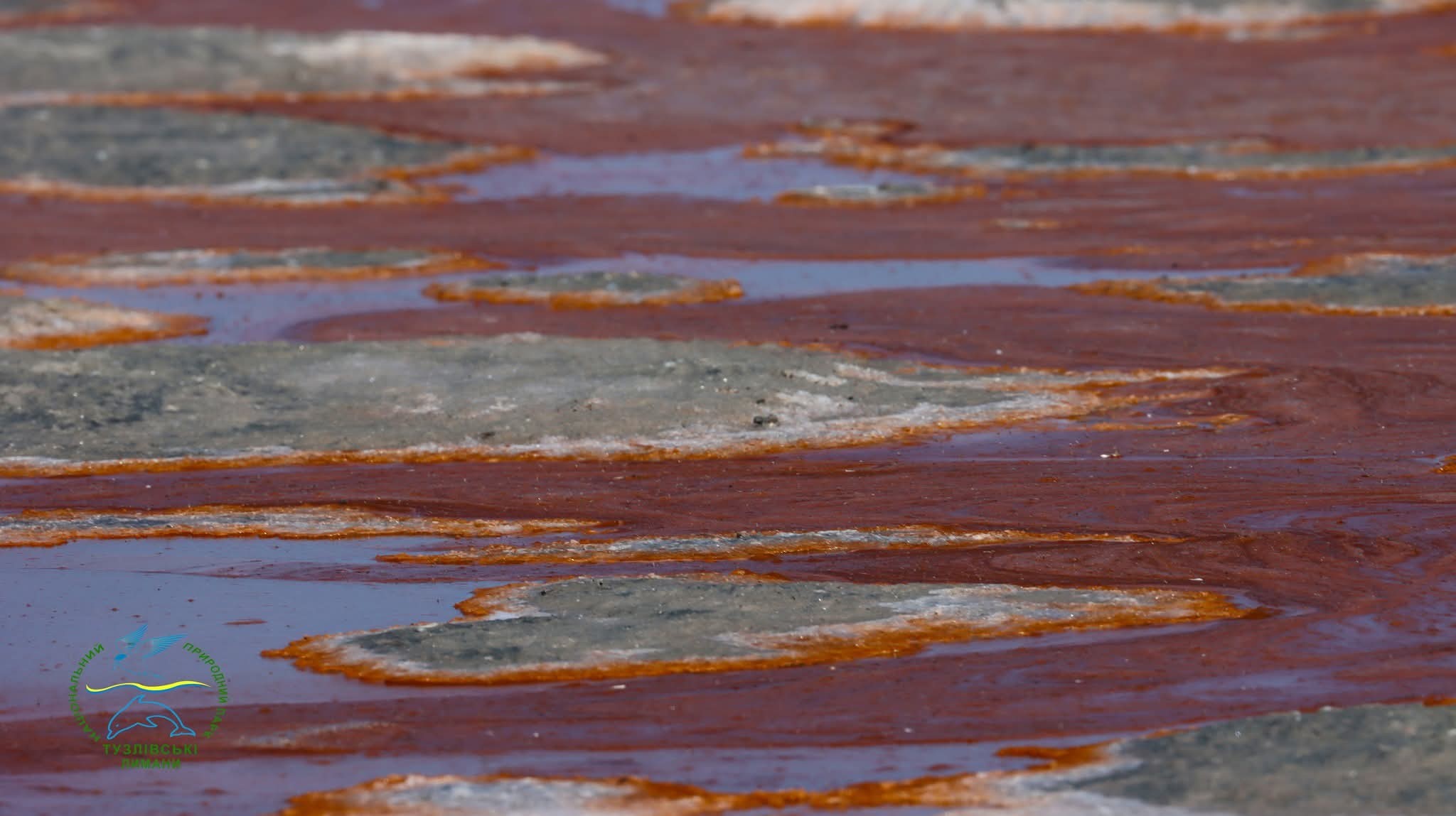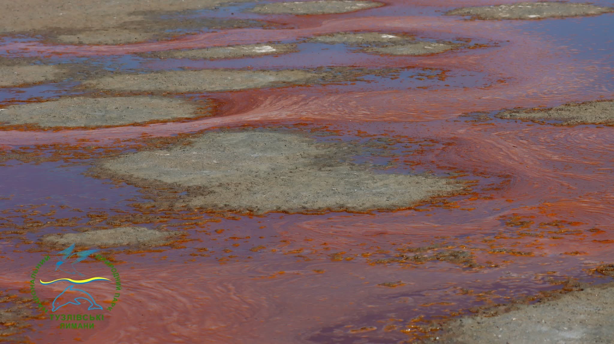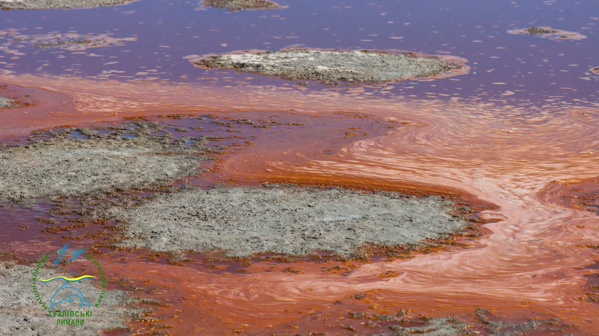 А ось на заповідних озерах Ювеналія Зайцева поруч з піщаним пересипом заповідної зони у нацпарку сформувалась неймовірна картина, яка розмальована спеціальними водоростями та бактеріями.