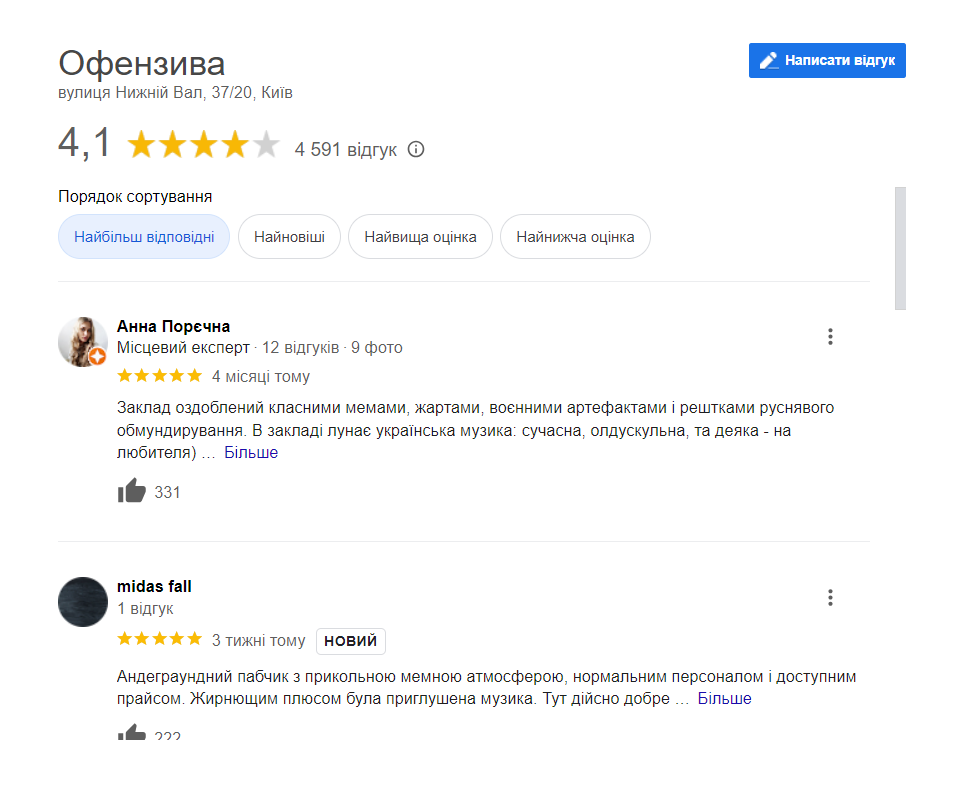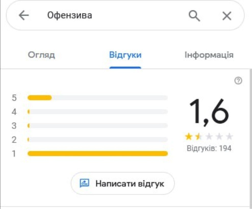 Проте незабаром низка патріотичних Telegram-каналів закликали українців поставити “5” бару й високий рейтинг закладу відновився.