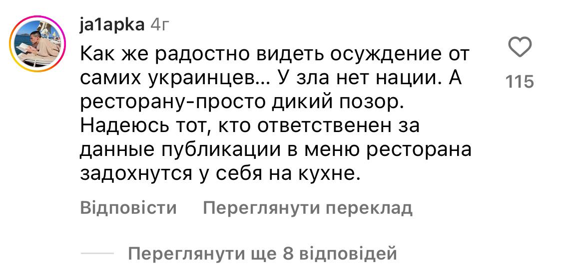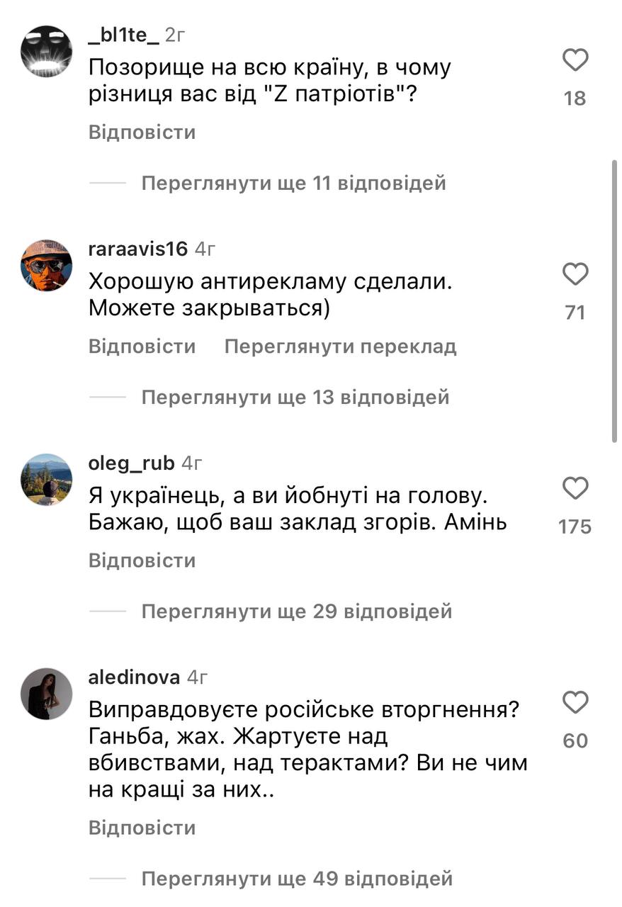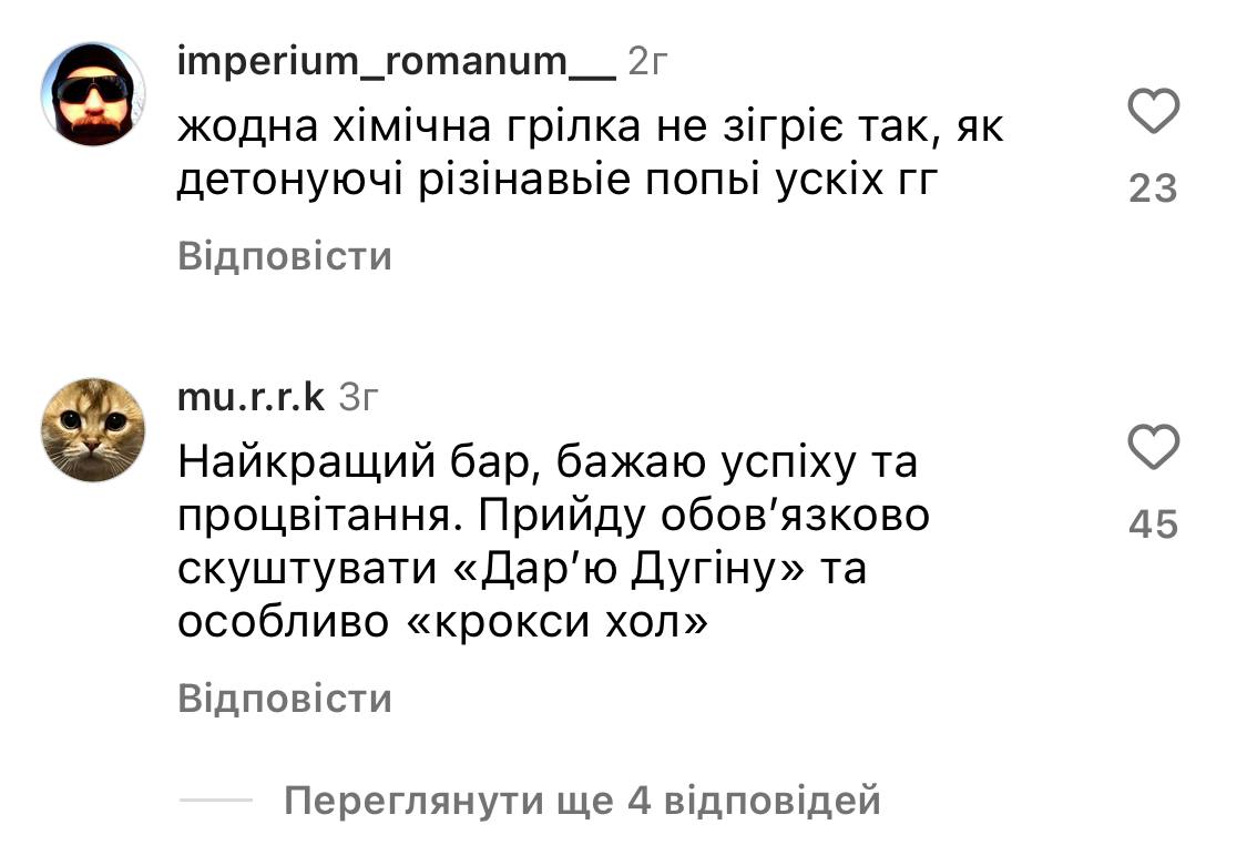 Українці також підтримали назви страв в коментарях бару в Instagram.