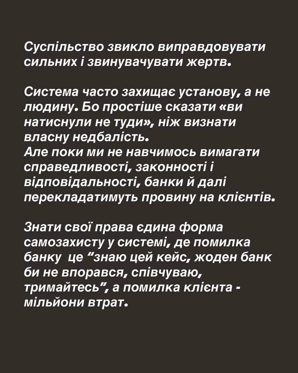 Манекен визнала, що припустилася помилки, однак водночас дорікає банку за те, що той не відреагував на підозрілу активність і велику кількість операцій з її рахунку.
