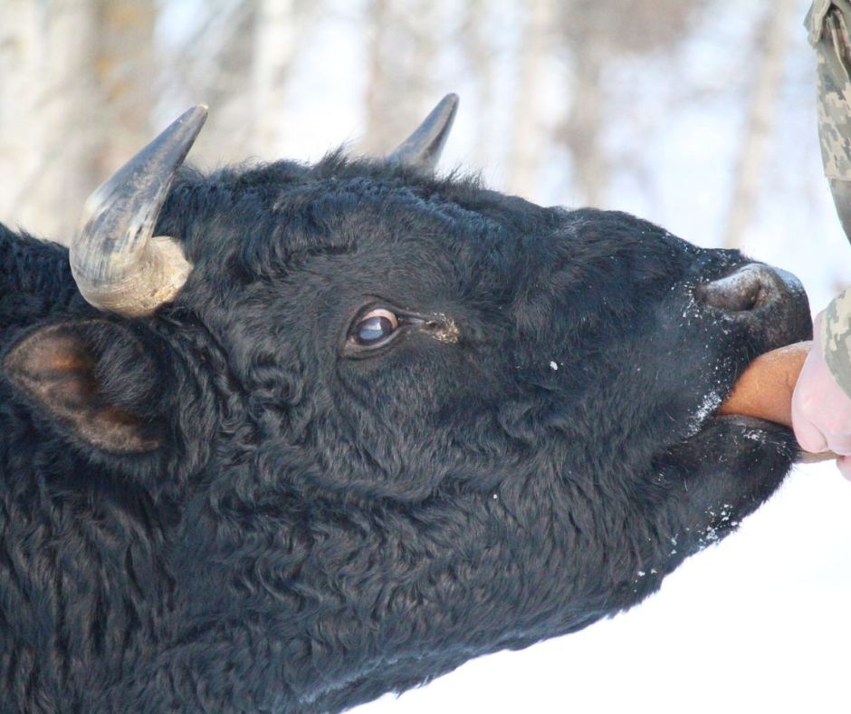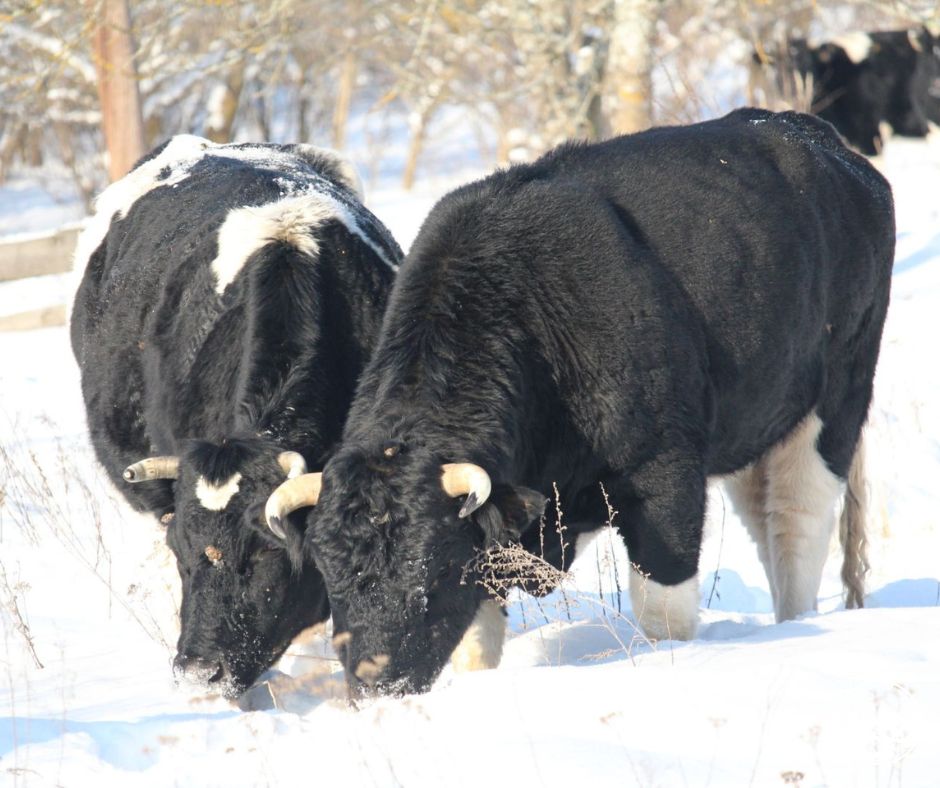 Нині стадо налічує 12 голів, серед яких шість дорослих корів і двоє телят. Попри складні погодні умови – морози, глибокий сніг і обмежену кормову базу – тварини перебувають у доброму фізичному стані. Вгодованість оцінюється як задовільна й навіть добра, що свідчить про їхню високу адаптацію до життя у дикій природі.