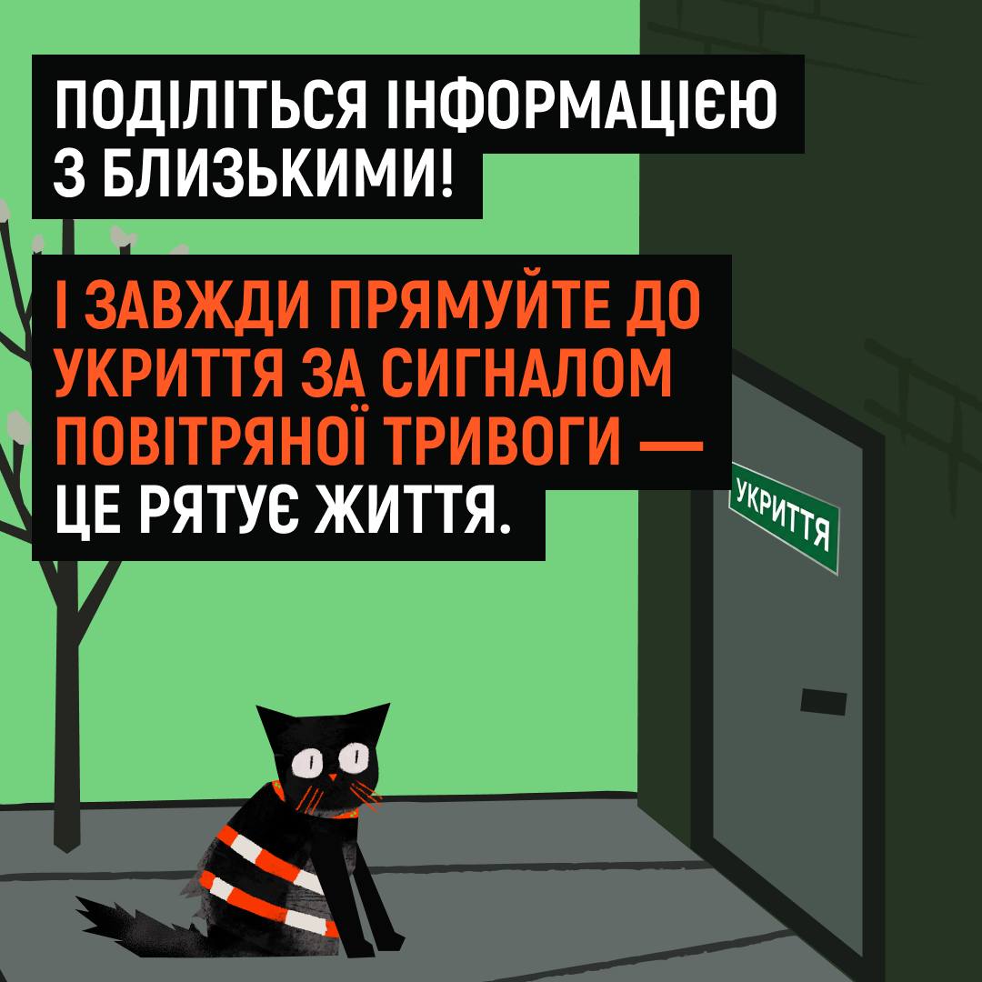 У ДСНС закликали не нехтувати власною безпекою та безпекою рідних: завжди прямувати до укриття після сигналу повітряної тривоги.
