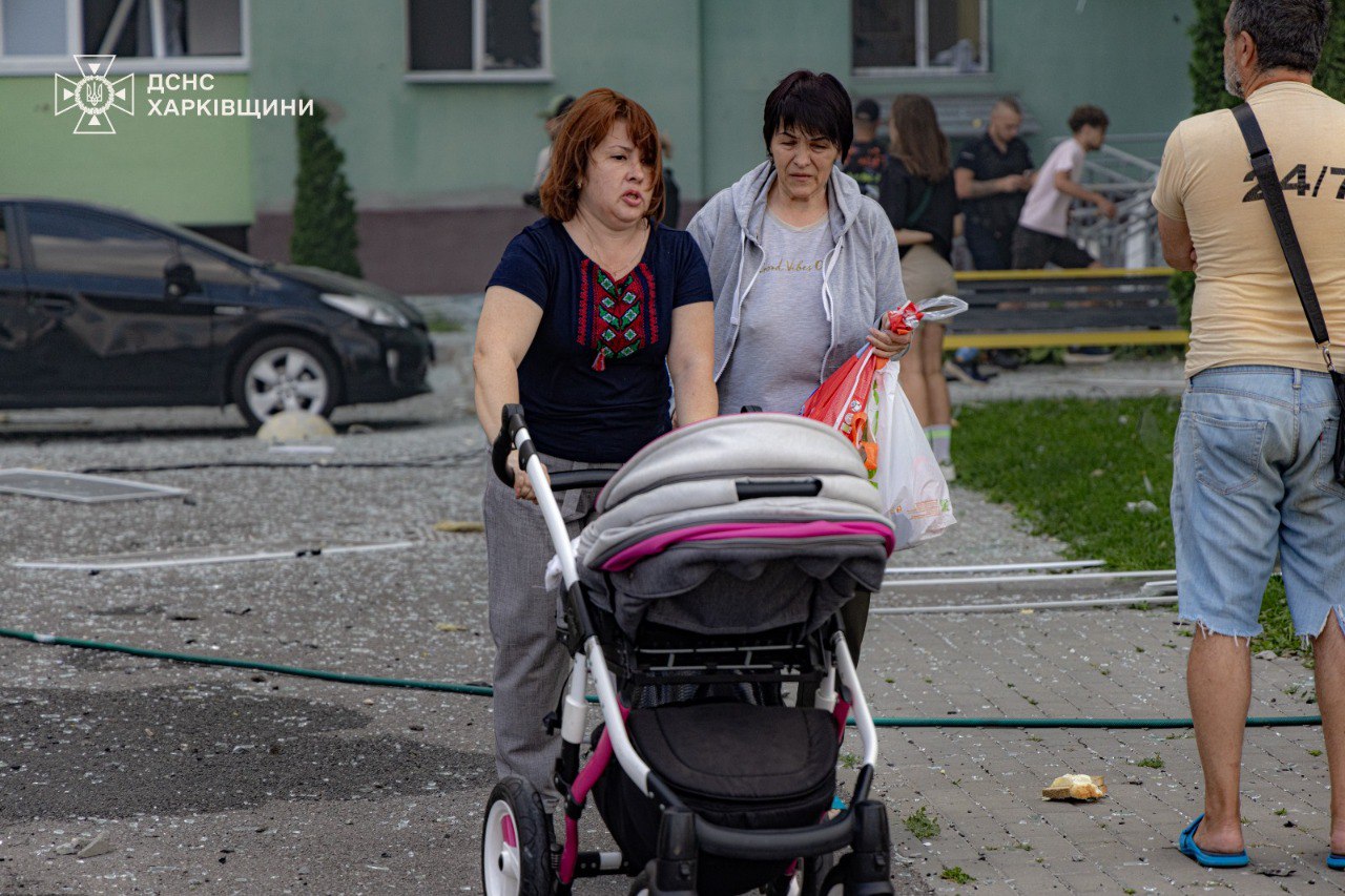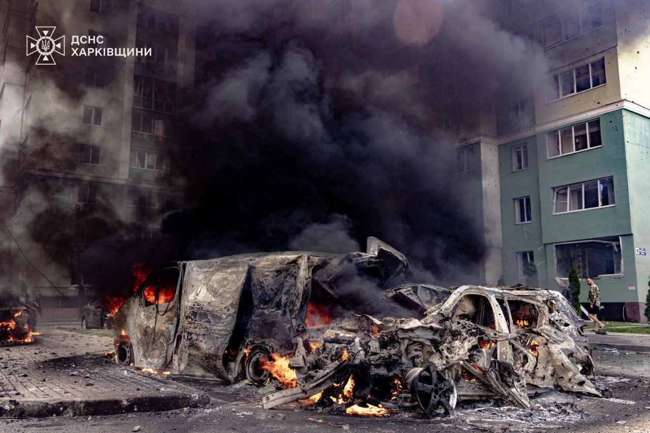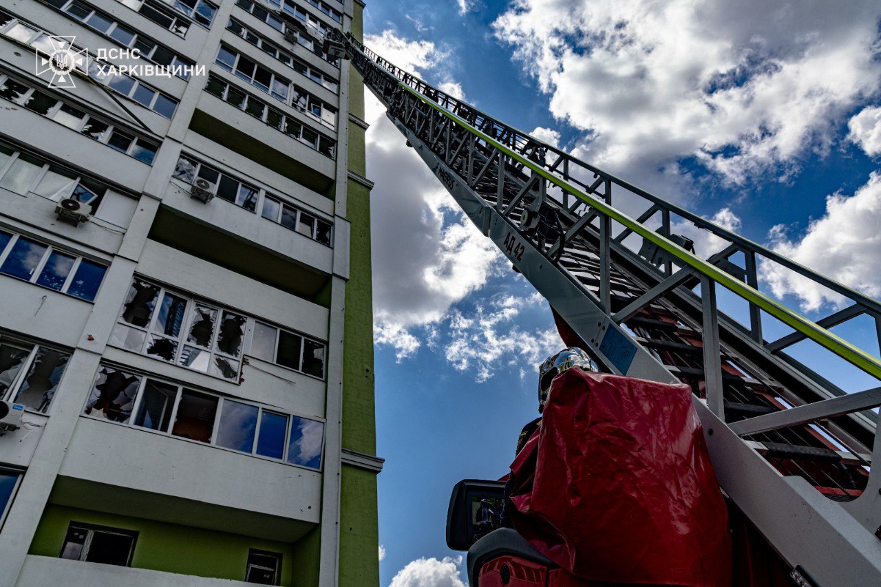 У ДСНС поінформували, що понад 100 рятувальників і 35 одиниць техніки ДСНС, піротехнічні та кінологічні розрахунки залучені до ліквідації наслідків сьогоднішньої російської терористичної атаки на Харків
