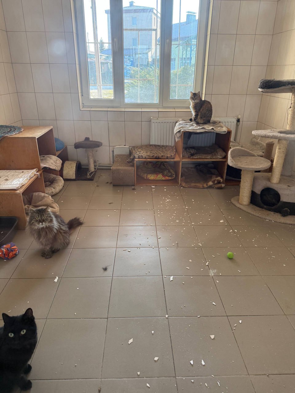Влучання сталось безпосередньо біля закладу. Вибуховою хвилею вибито вікна у приміщенні для котів, де перебувало близько 100 тварин. Також пошкоджено покрівлю, дві операційні, склад кормів, газове обладнання та систему опалення. У вольєрах зафіксовано численні уламки скла.