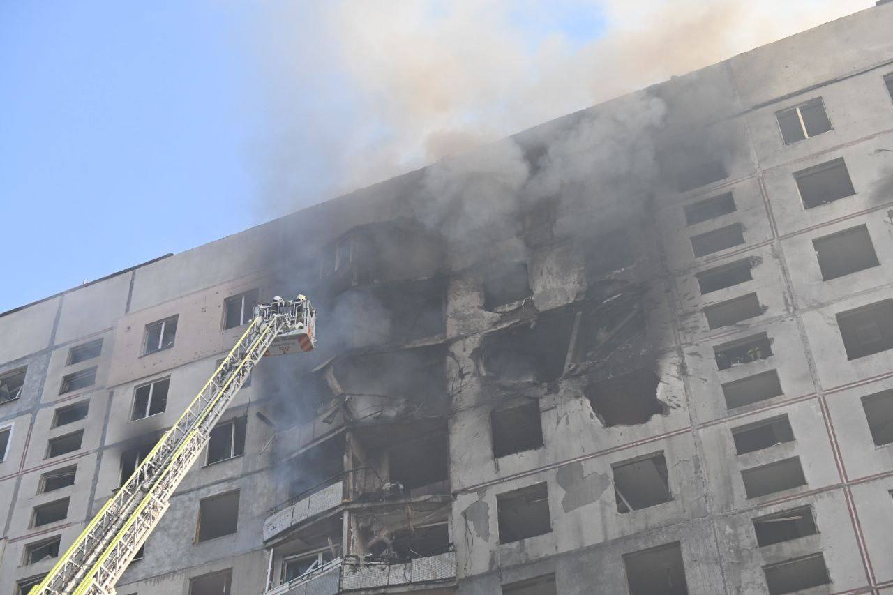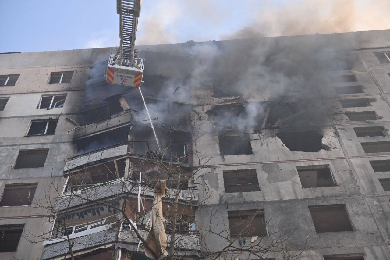 За словами президента Володимира Зеленського, на місці триває рятувальна операція. Пошкодження є між дев’ятим та 12 поверхами.