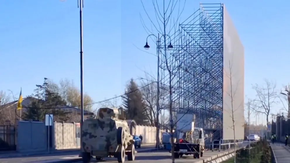 Гігантська конструкція розміром 30 на 10 метрів закрила будівлю поруч із президентською резиденцією. Військовий оглядач BILD іронічно назвав це спробою захистити “чутливого” Путіна від кольорів, що його “нервують”.