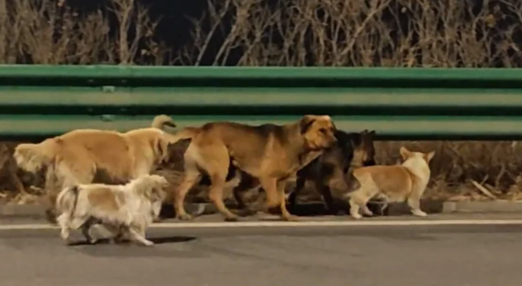 16 березня користувач соцмереж, на ім’я Лу, записав відео, на якому семеро собак йдуть дорогою у Чанчуні, провінція Цзилінь.
