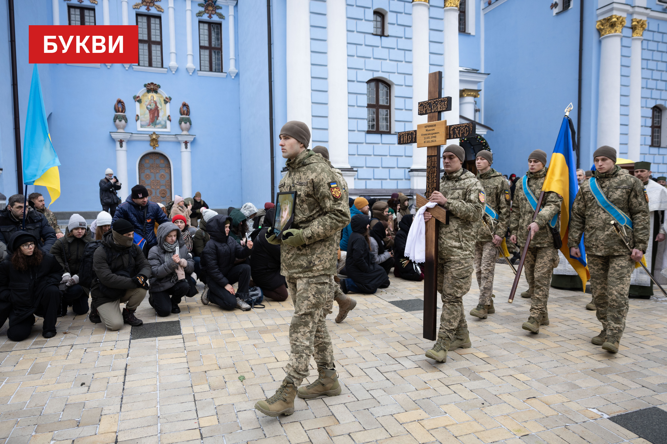 Церемонія прощання відбулася у Михайлівському Золотоверхому соборі. Близько тисячі осіб прийшли, аби провести в останню путь українського захисника. Серед присутніх на церемонії прощання були військові, рідні та друзі.