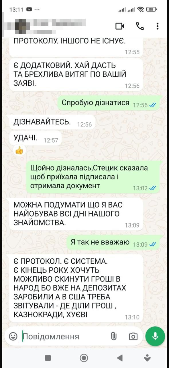 Для приховування протиправної діяльності адвокат наказав потерпілій відкрити рахунок у банку на своє ім’я та відправити йому поштою картку з пін-кодом. Потім зловмисник переадресував посилку на знайомого і попросив його перевірити баланс картки. Надалі з неї зняли близько 800 тис. гривень.