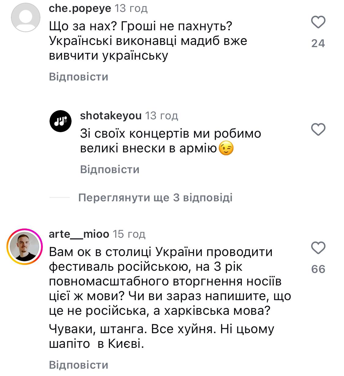 Також організатори “Шо Таке Йоу?” не повідомили про скасування заходу, а в коментарях наголосили, що артисти є українськими, а захід – благодійним.