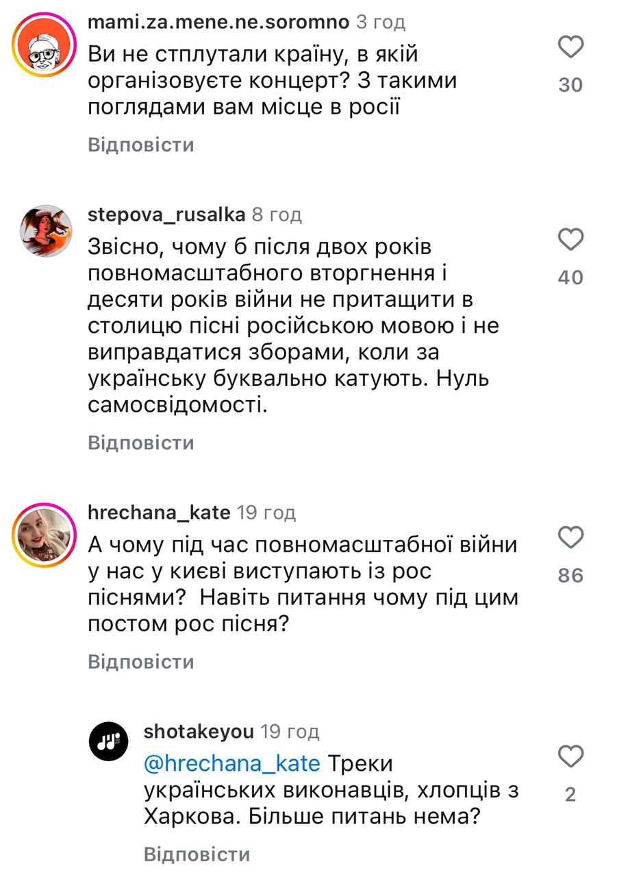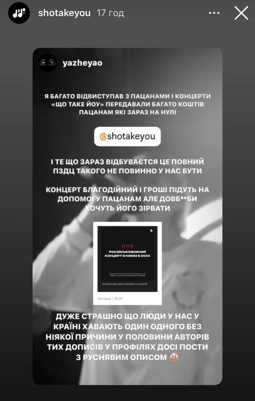 У закладі також зазначили, що чекають на пояснення від організаторів “Шо Таке Йоу?”. Однак останні не прокоментували ситуацію, а лише зробили репост сторіс користувачів, які стали на захист концерту.
