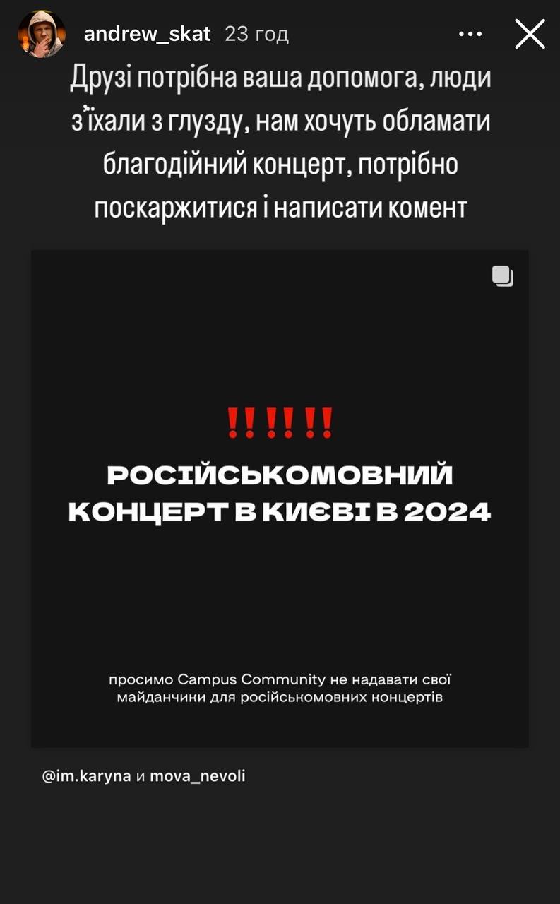 “Ми не проводимо заходи для російских виконавців та не співпрацюємо з ними. Завжди підтримуємо проєкти, створені на підтримку наших військових. Від імені адміністрації Campus Community приносимо вибачення за дану ситуацію, та робимо все можливе, аби подібне не повторилося у майбутньому,” – йдеться в повідомленні.