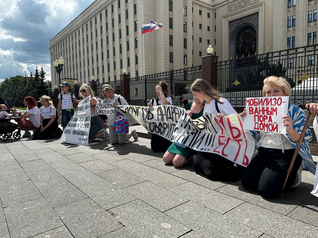 У Москві дружини мобілізованих на колінах проводять пікет біля будівлі міноборони РФ