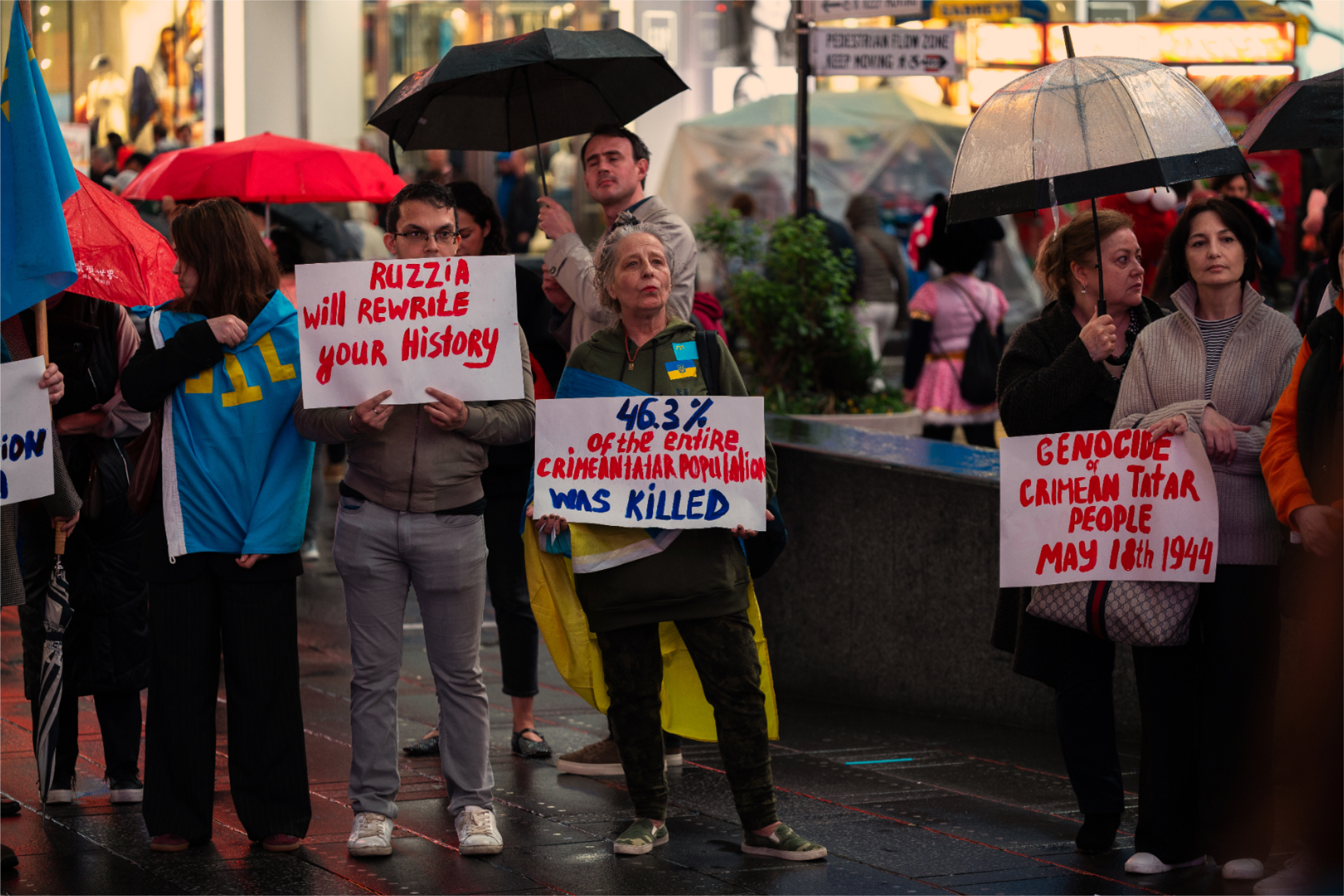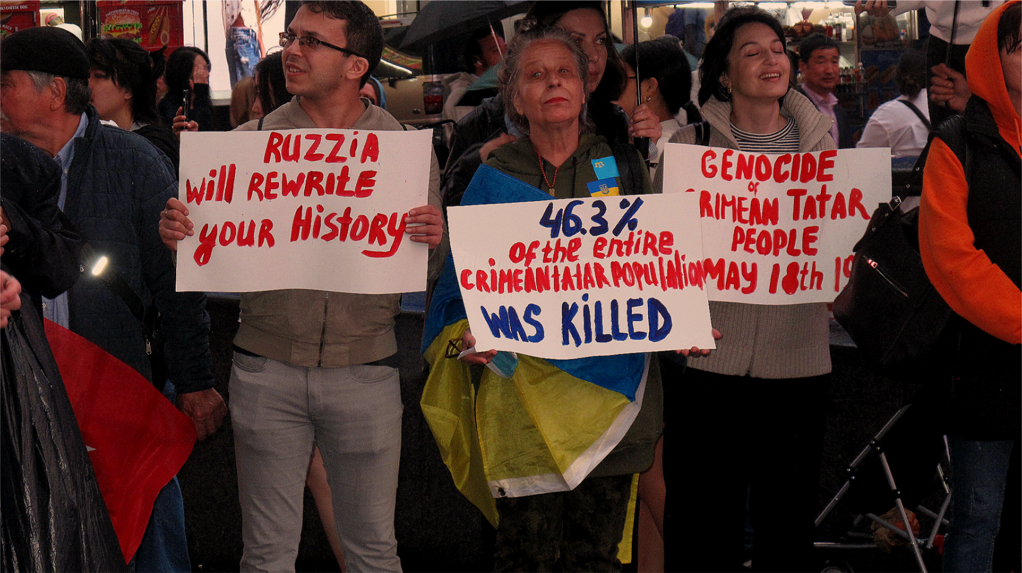 Сотні кримських татар з усього Нью-Йорка зібралися на Тайм-сквер 18 травня, аби відзначити трагічні 80-ті роковини геноциду та примусової депортації етнічного народу з Криму радянською владою у 1944 році, — зазначили у повідомленні для Букв.