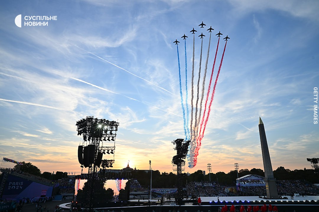 Після того, як авіація намалювала у небі французький національний прапор, — розпочався парад атлетів.