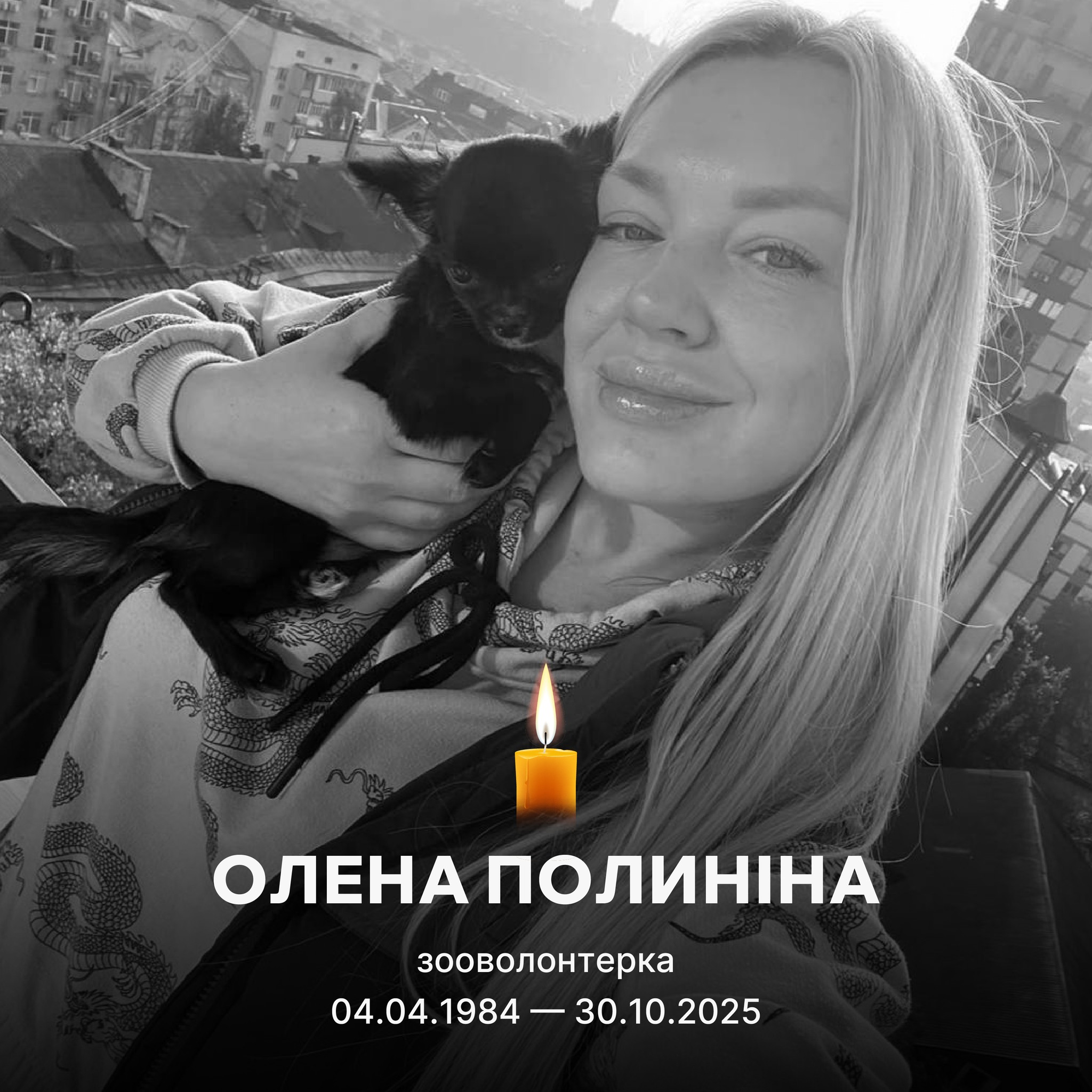 30 жовтня у Слов’янську під час ворожого обстрілу загинула волонтерка Олена Полиніна. Про її загибель повідомила громадська організація U-Hearts, що займається порятунком тварин.