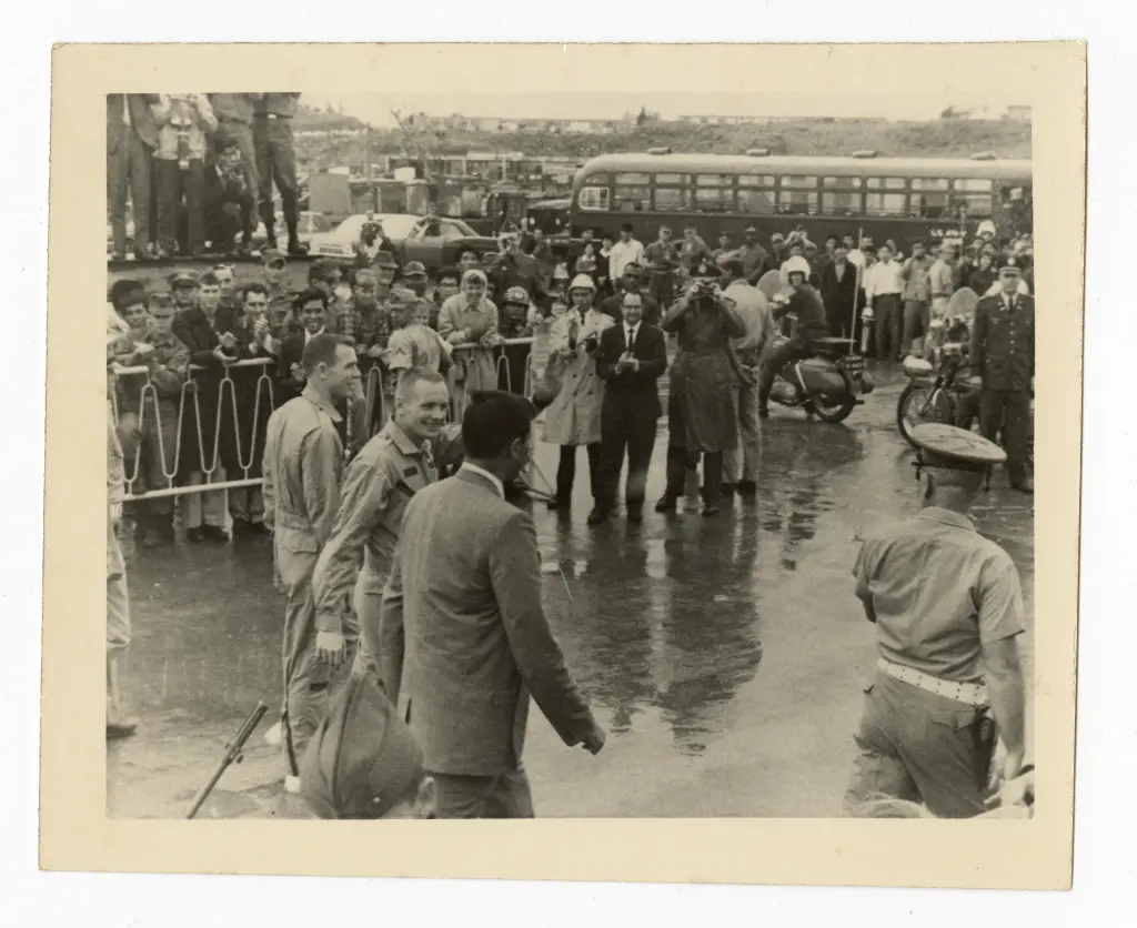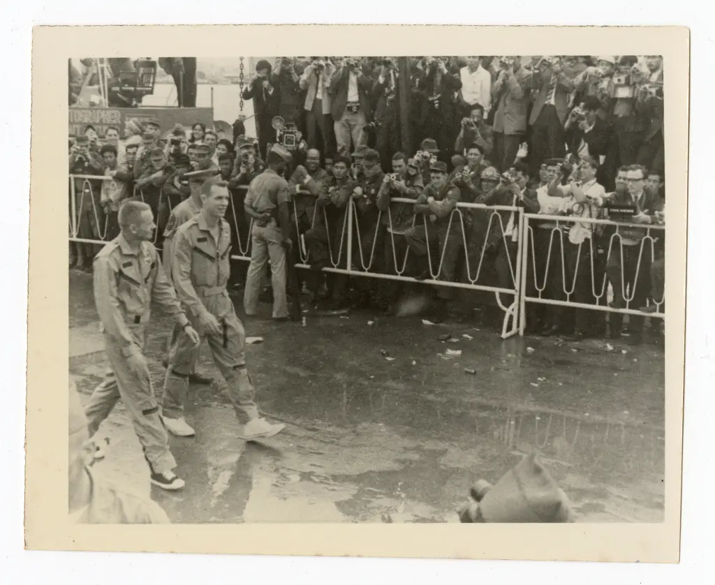 На переданих знімках видно астронавтів на палубі корабля ВМС США, а також момент, коли капсулу “Джеміні-8” піднімають у повітря для транспортування. Частина фото показує, як Армстронг і Скотт вітають військових на березі.