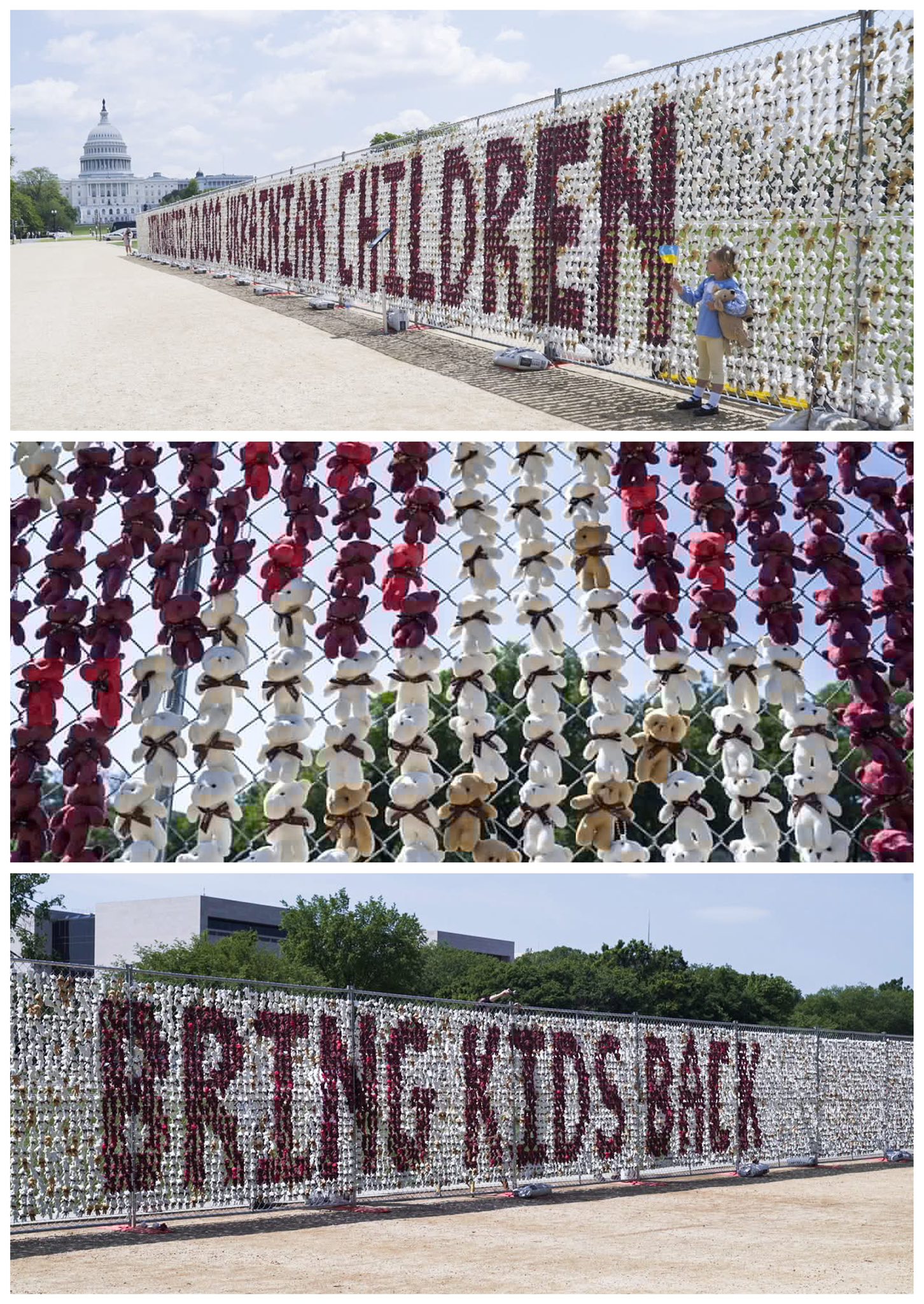 У центрі Вашингтона виставили 20 000 плюшевих ведмедиків. Така інсталяція є нагадуванням про викрадених Росією українських дітей.