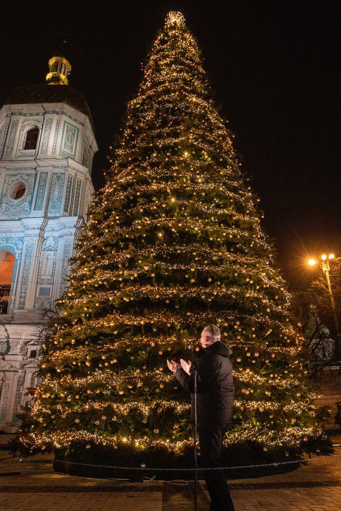 На Софійській площі в Києві запалили вогні на головній ялинці країни.