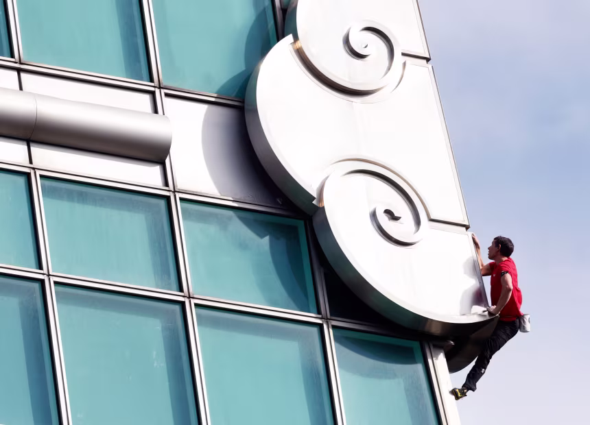 Скелелаз не тримався за скляний фасад будівлі – маршрут проходив металевими конструкціями, балками та виступами. Найскладніші технічні елементи були ближче до вершини, однак Гоннольд подолав їх без суттєвих труднощів. У кількох місцях він зупинявся на балконах, щоб перепочити та помахати глядачам.