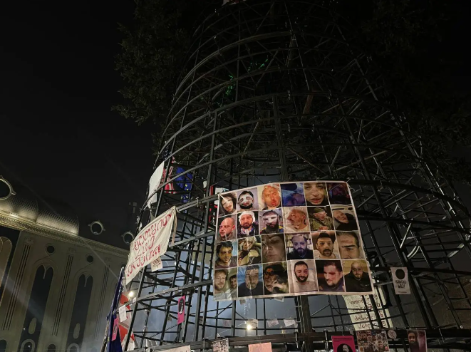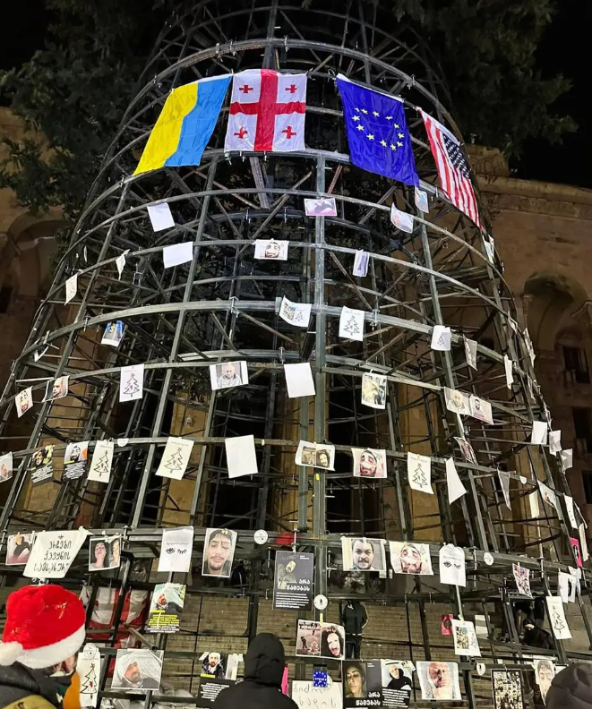 Нині каркас ялинки обвішаний прапорами Грузії, ЄС, України та США, а також фотографіями співробітників грузинських ЗМІ, грузинських активістів, котрі постраждали під час розгонів акцій протесту (з 28 листопада) або на яких цілеспрямовано напали співробітники силового відомства чи тітушки.
