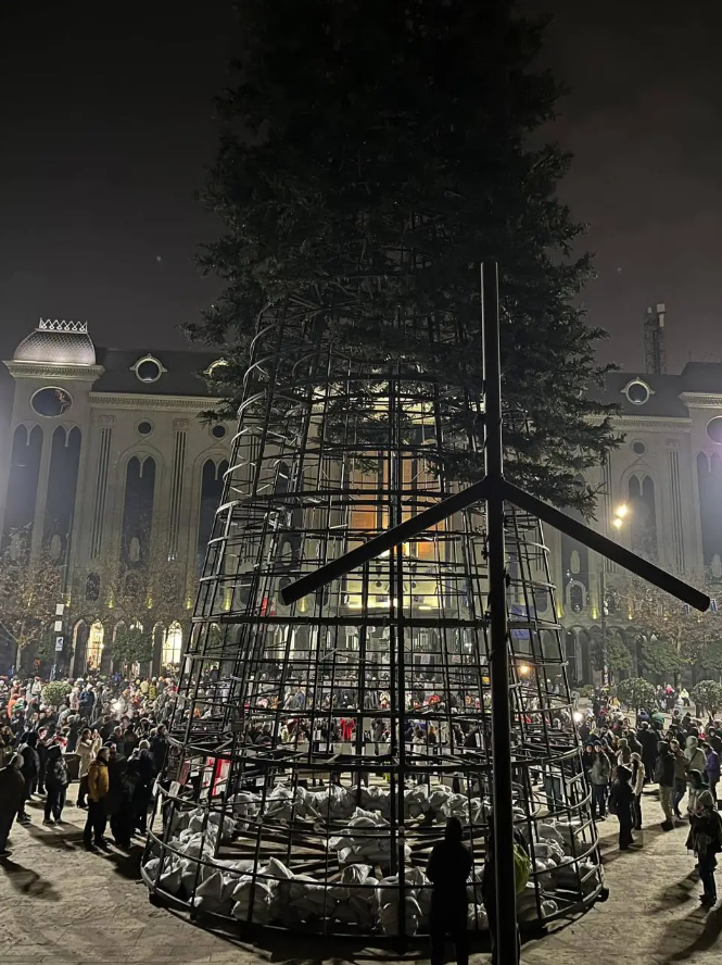 Міській владі Тбілісі не вдалося через масові протести завершити встановлення новорічної ялинки на проспекті Руставелі біля парламенту.