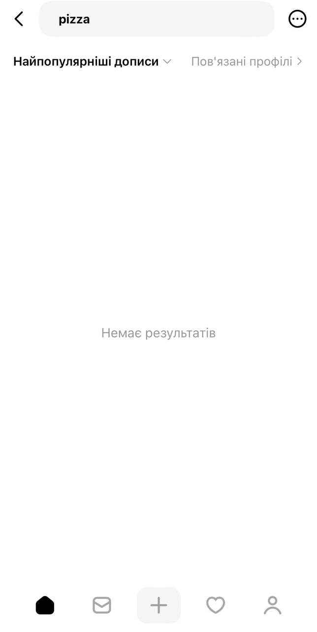 Користувачі платформи Threads повідомляють, що в сервісі неможливо знайти публікації за запитом pizza. Пошук англійською мовою не дає результатів. Водночас слово “піца” українською мовою залишається доступним у пошуку і коректно відображає дописи.