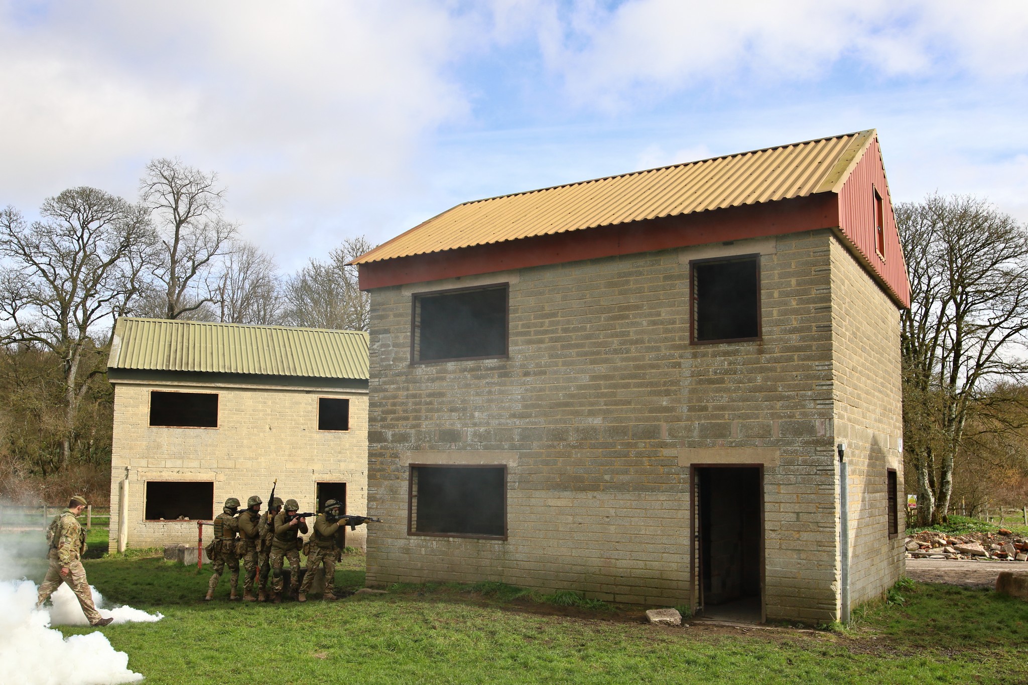 Тренування відбувалося на одному з британських полігонів, де реалістично відтворена урбанізована місцевість: кількаповерхові приватні будинки, мініготелі, городи і сади, господарські приміщення, паркани та огорожі.