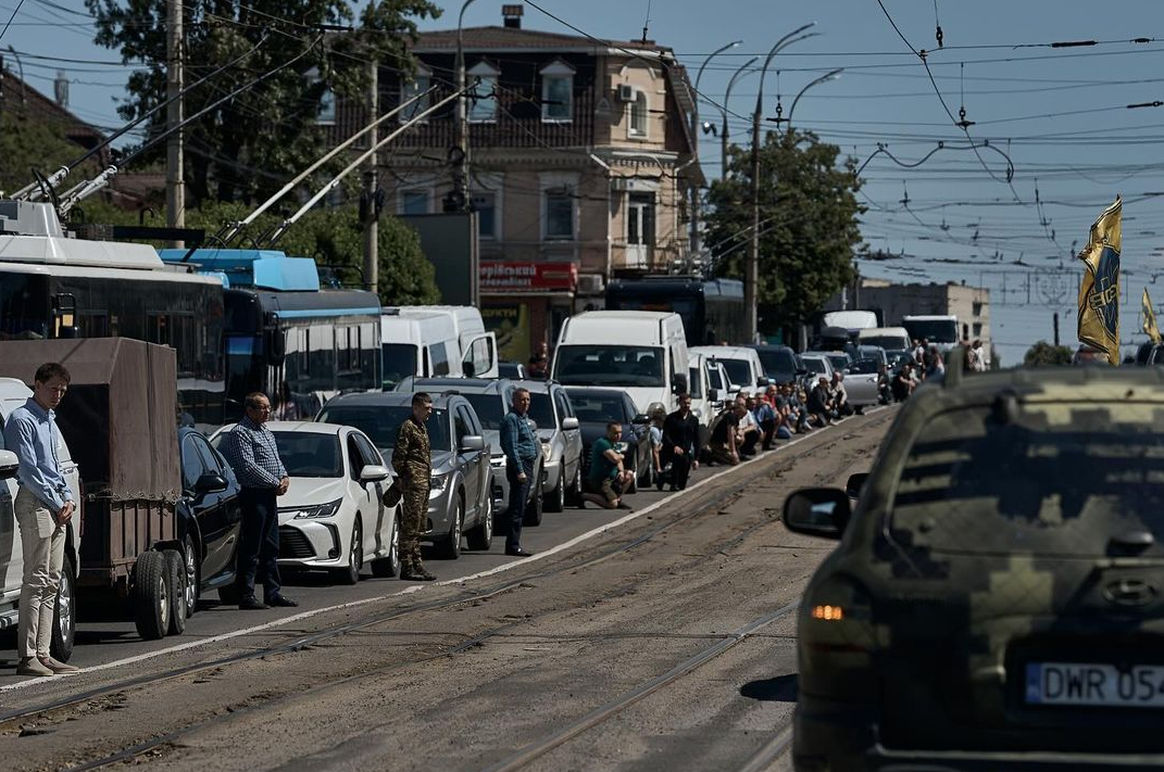 До місця прощання колону з труною супроводжували люди. Водії зупиняли рух та виходили з машин, пасажири виходили з громадського транспорту.