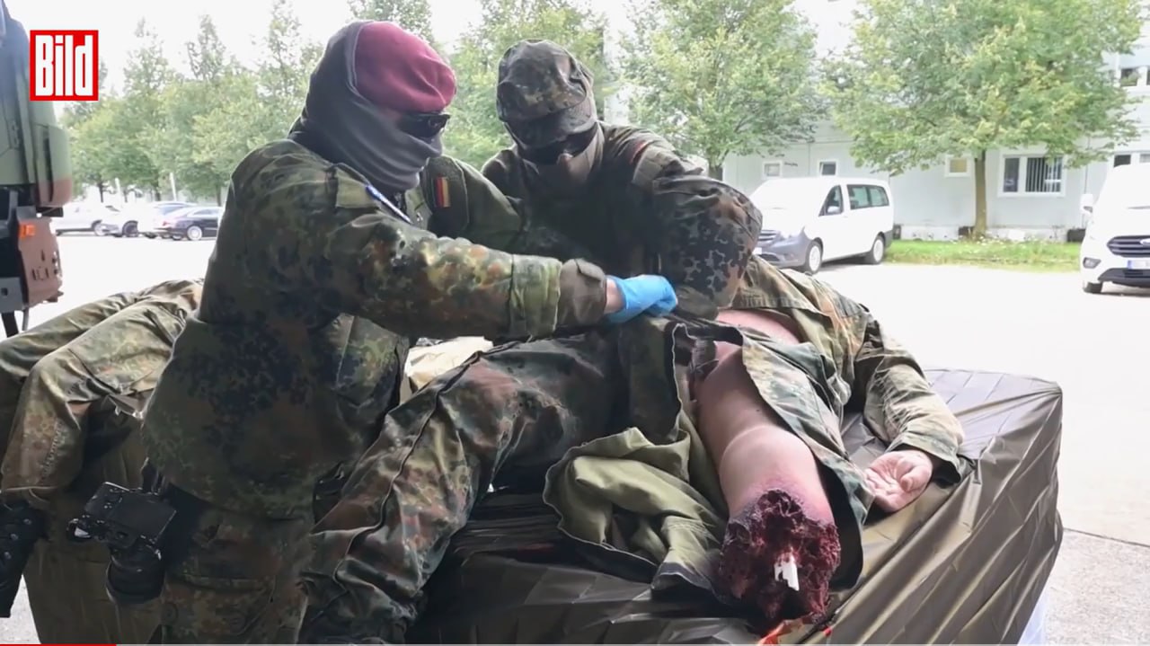 Україна закупила п’ять травматологічних ляльок по 100 000 євро кожна, за допомогою яких можна максимально реалістично відпрацювати ситуації надання першої допомоги на полі бою, розповіла інструкторка бундесверу Олена. — Будь-хто, хто стикався з криками та бризками крові на манекені, сподіваюся, зможе краще справлятися з цим у надзвичайній ситуації та зберігати холоднокровність при порятунку поранених.