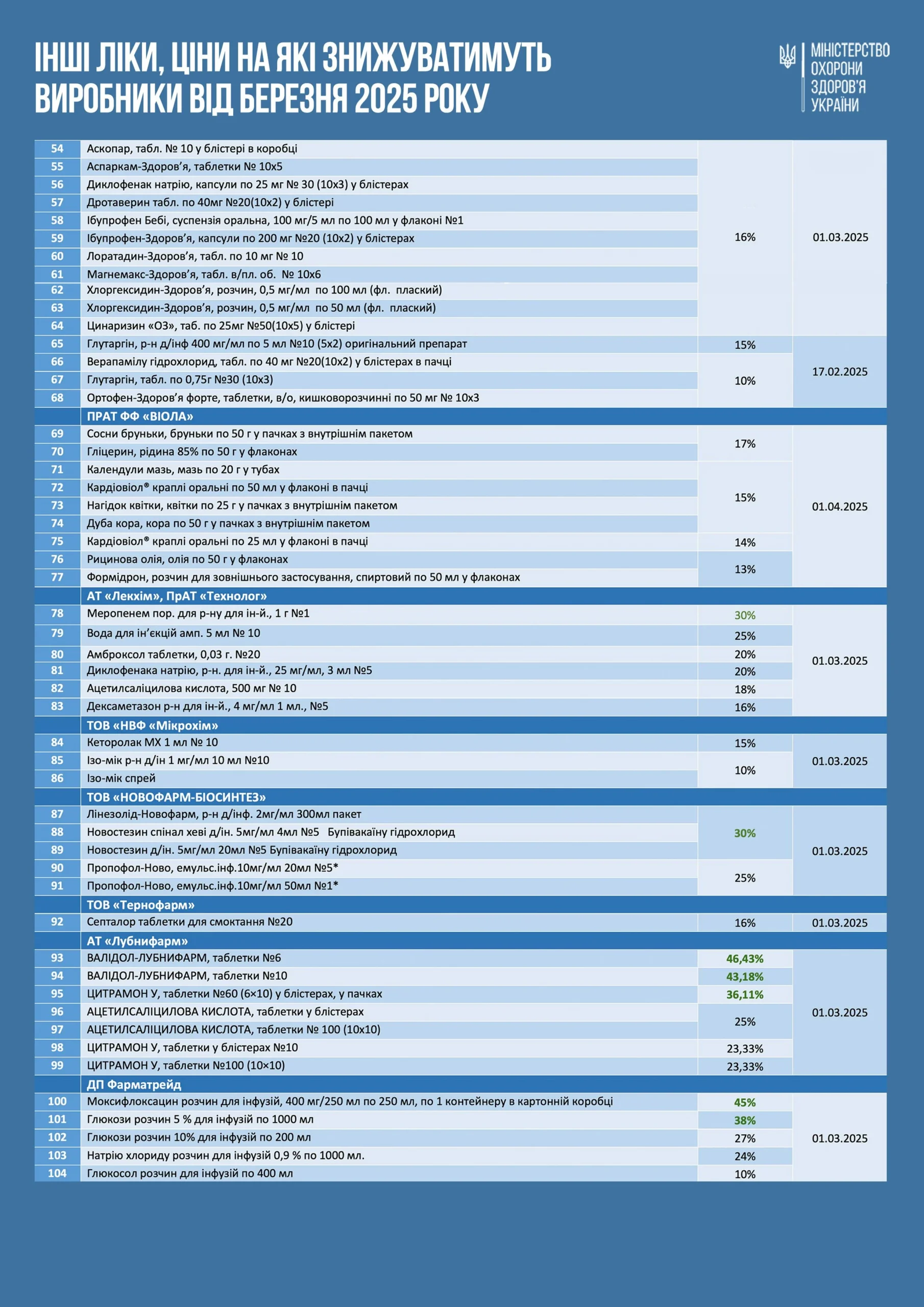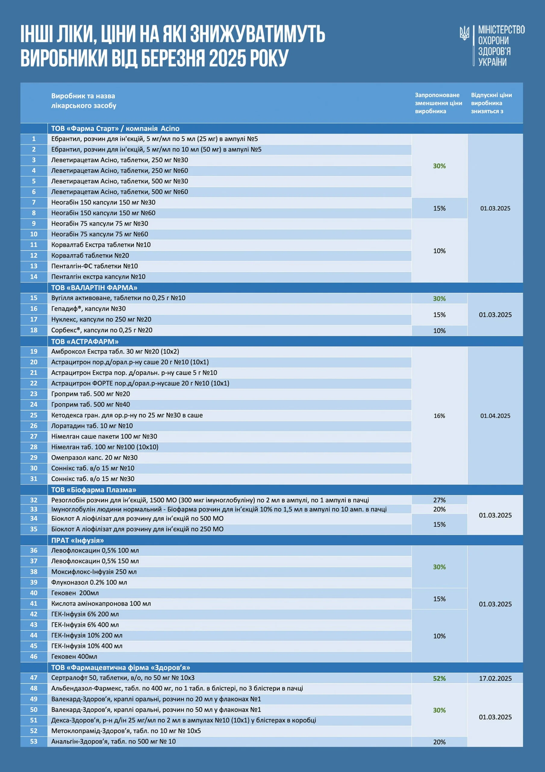Відпускні ціни виробники знижуватимуть, починаючи з березня 2025 року.