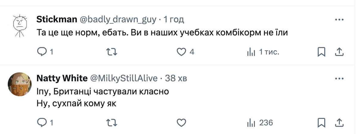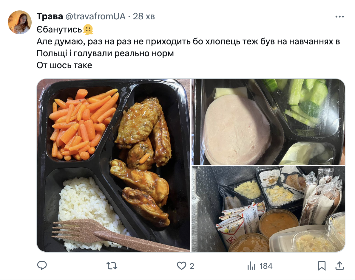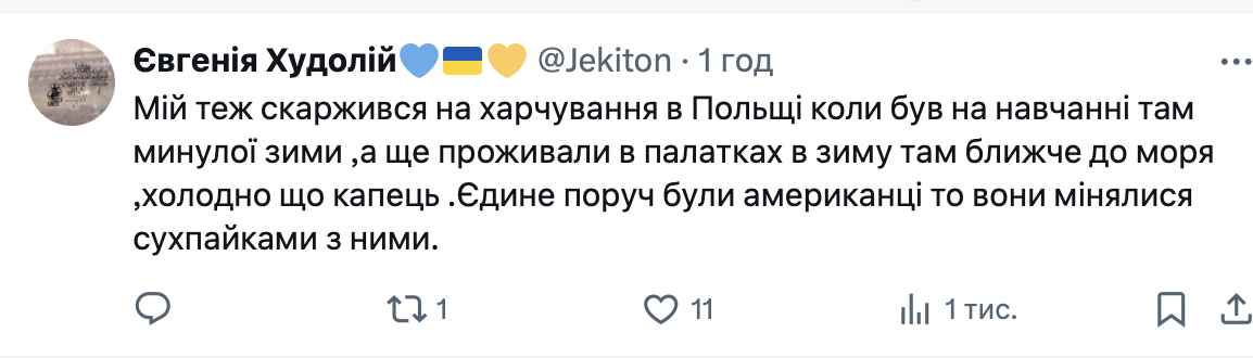 “Якщо сталося так, що Ви військовослужбовець, і дізналися що їдете за кордон на навчання – не поспішайте радіти. До вашої уваги, харчування солдата із ЗСУ на базі країни НАТО, а саме в Польщі. Мені пох**, що мені за це буде, за скот тримати себе не дозволю. І це ще квіточки”, – написав він.