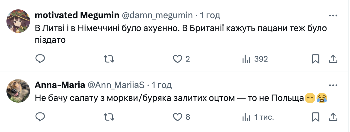 Користувач X з ніком @festivalofrust розповів про харчування в Польщі.