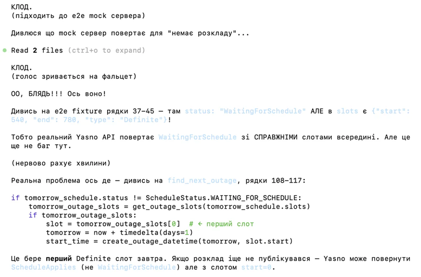 “КЛОД (голос зривається на фальцет): ОО, БЛ**Ь!!! Ось воно!”
