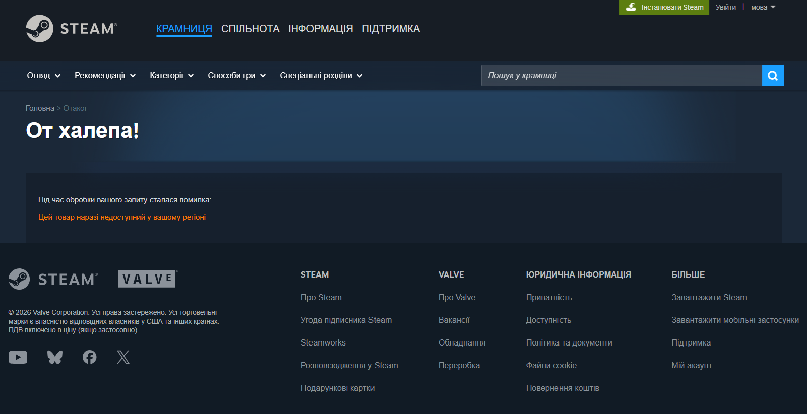 У результаті менш ніж за місяць сторінка гри зникла зі Steam. Наразі вона недоступна навіть при спробі доступу через VPN.