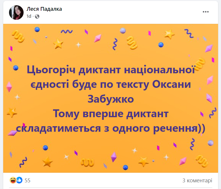 Нещодавно “Суспільне Мовлення” оголосило, що цьогорічною авторкою всеукраїнського радіодиктанту національної єдності стане Оксана Забужко. Однак в соцмережах з гумором відреагували на новину.