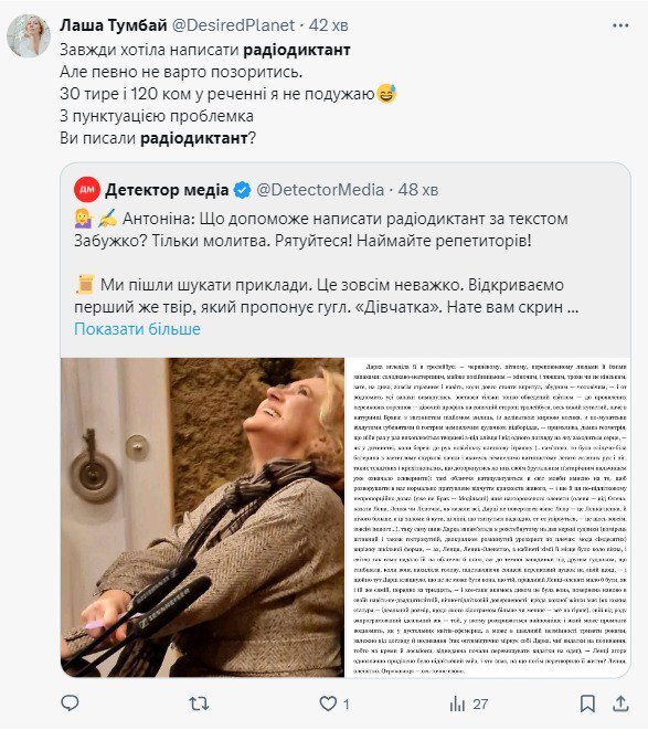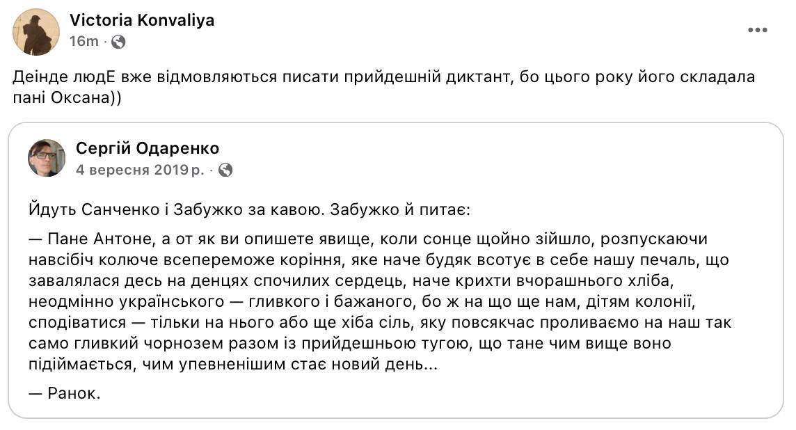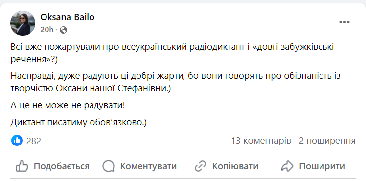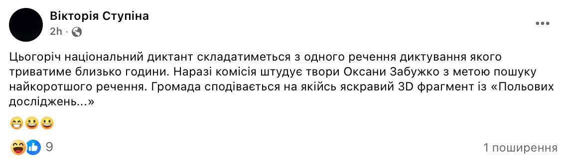 Відтак користувачі соцмереж почали жартувати щодо того, який текст напише Забужко для цьогорічного радіодиктанту.