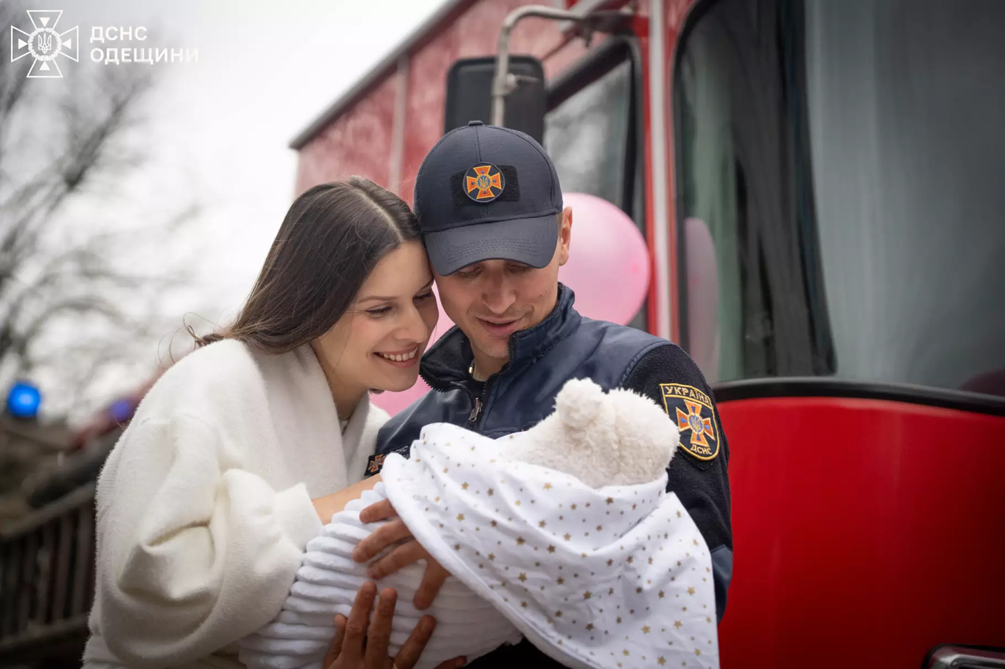 В Одесі рятувальники зустріли новонароджену доньку свого колеги на пожежній машині