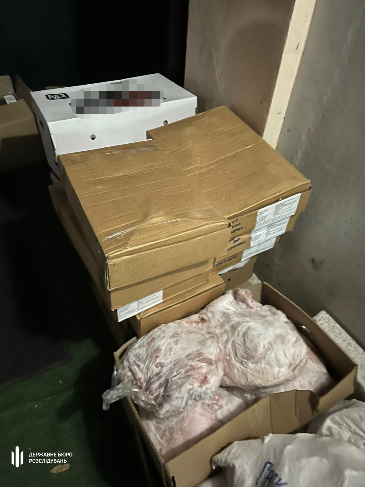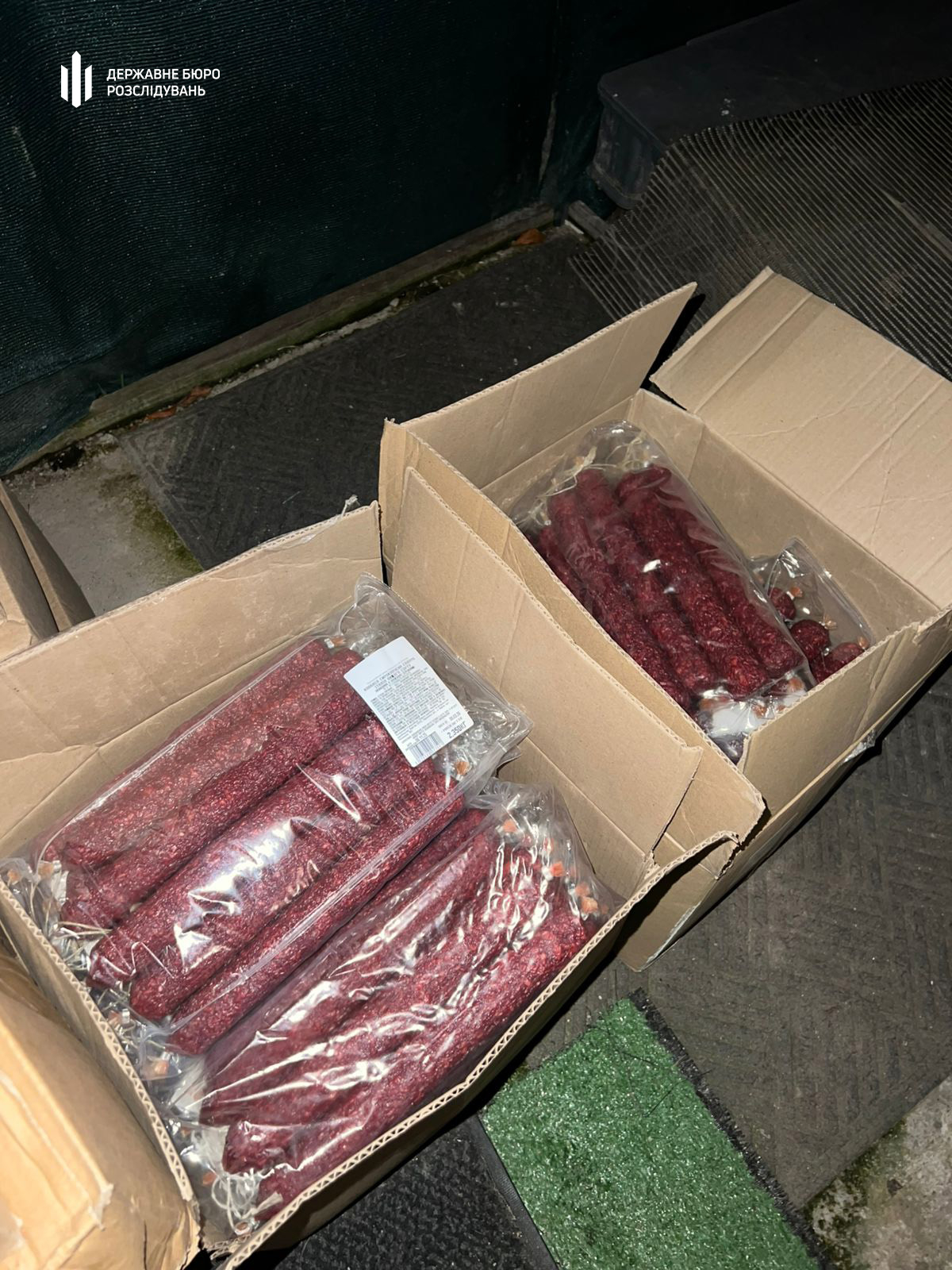 Працівники ДБР провели обшуки, під час яких вилучили понад 600 кг м’яса, 80 кг риби, 60 кг ковбаси, 110 кг сиру, 12 кг масла та інші продукти на суму близько 160 тис. грн. На місці було затримано начальницю їдальні, інструктора та водія.
