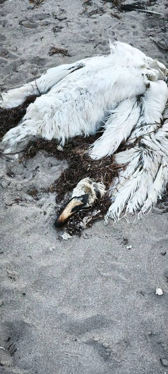 “Узбережжя Азовського моря неподалік бази відпочинку “Гюнай” усипане трупами лебедів. Десятки мертвих птахів лежать просто на піску вздовж лінії прибою. Цю моторошну картину місцеві жителі окупованого Генічеська фіксують уже не вперше”, – зауважують у ЦНС.