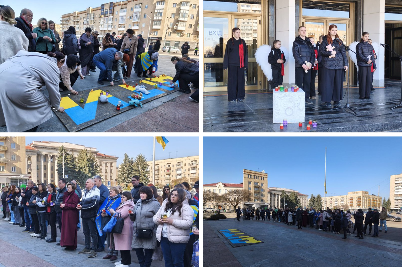 Акції пам’яті пройшли й в інших містах України. Зокрема, у Житомирі люди зібралися біля обласного академічного музично-драматичного театру імені Івана Кочерги, де запалили лампадки та створили символічну інсталяцію.