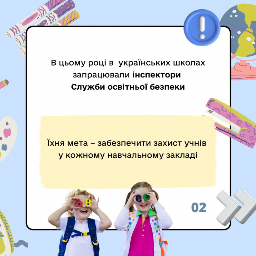 Вже цього року в українських школах запрацюють інспектори Служби освітньої безпеки. Нововведення спрямоване на забезпечення безпеки учнів та вчителів.
