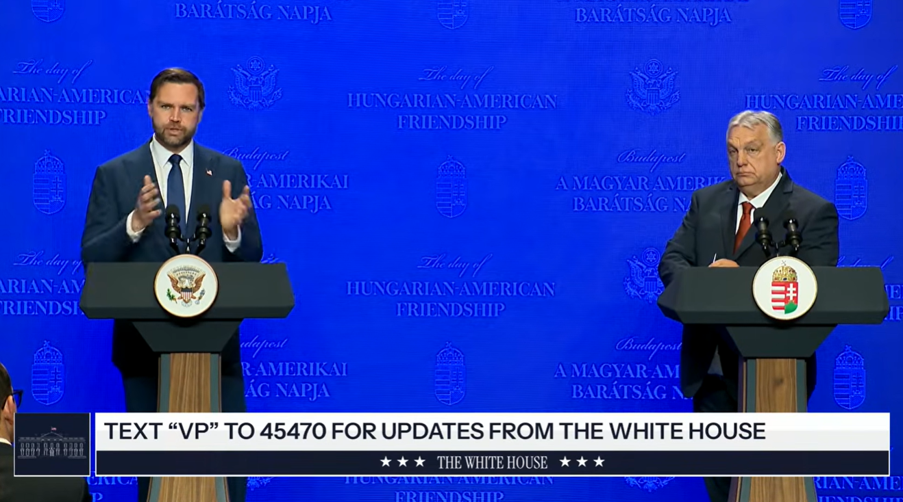 Джерело: Джей Ді Венс під час пресконференції з Віктором Орбаном у Будапешті (YouTube: The White House).