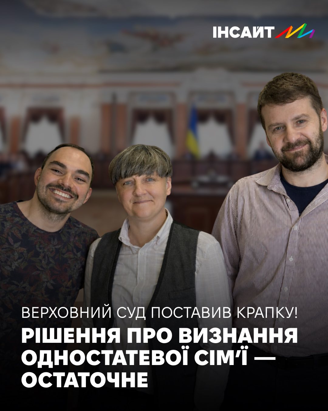 25 лютого Верховний Суд України відхилив касаційну скаргу громадського руху “Всі разом!”, залишивши у силі рішення, яким встановлено факт спільного проживання однією сім’єю (фактичних шлюбних відносин) між двома чоловіками.